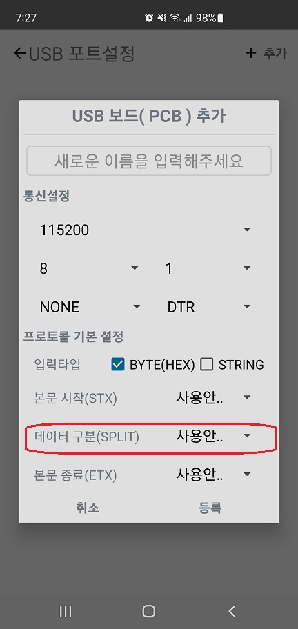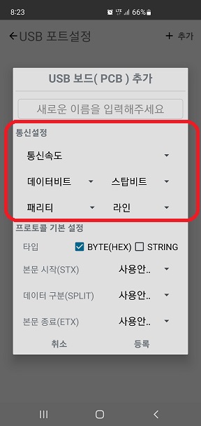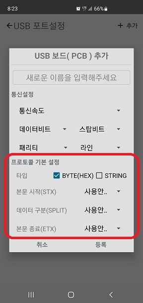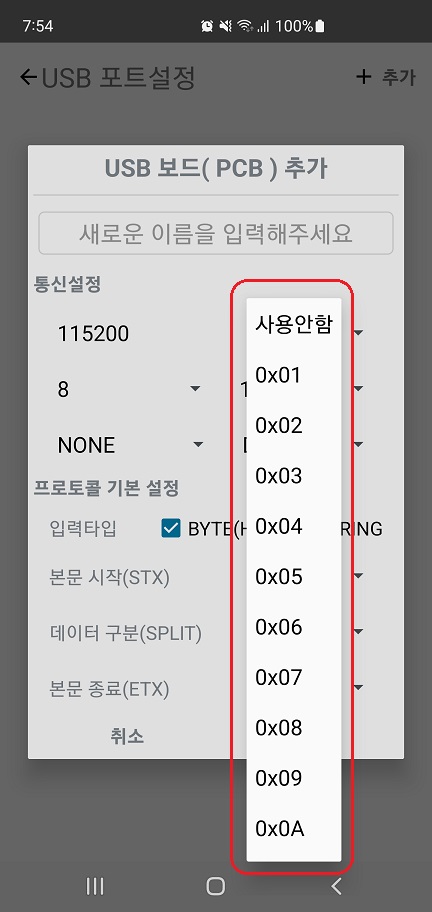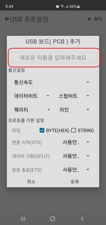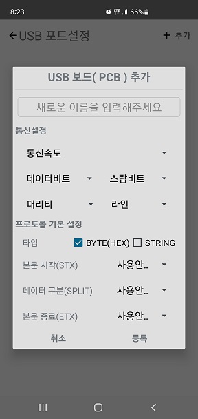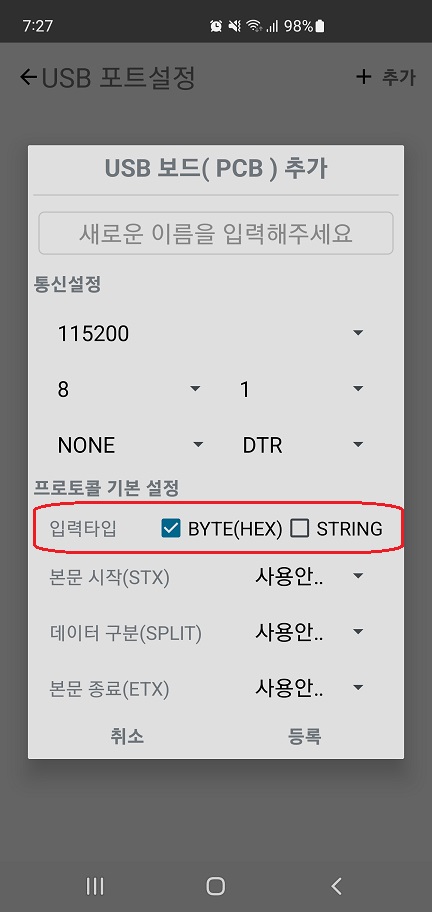 ○ 입력 타입 : "BYTE( HEX )" 보드를 등록합니다.