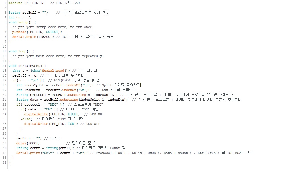 ☆ IOT 코아에서 설정한 "입력 타입" STRING, BYTE( HEX )는 아두이노와 무관합니다.