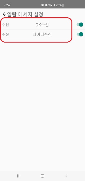 ◎ "알람 메세지" 목록에서 개별 토글 버튼활용하세요.