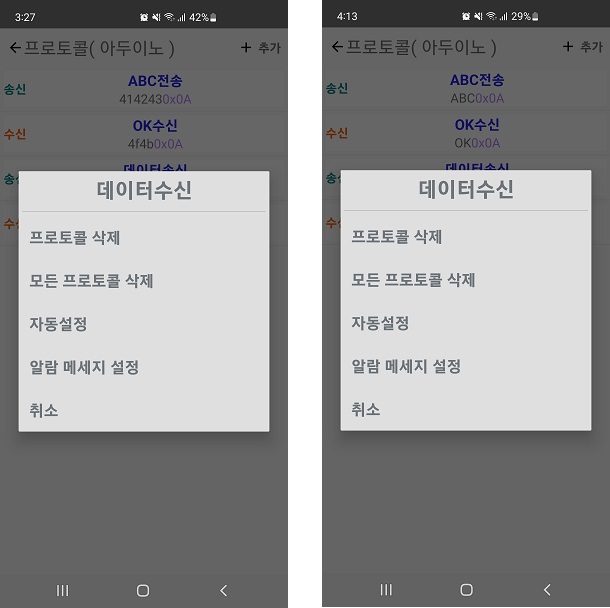 4-2-1. "데이터수신" 프로토콜을 선택합니다 ( B 타입 )