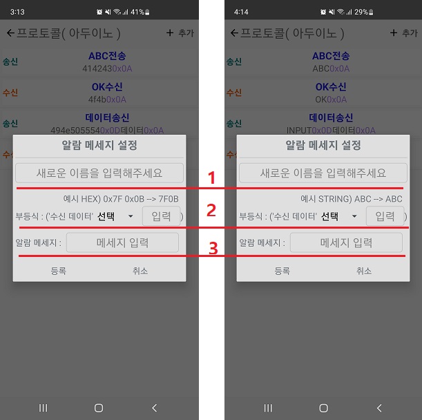 4. "알람 메세지"는 2가지 방식을 지원합니다