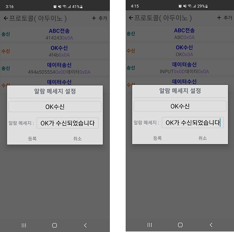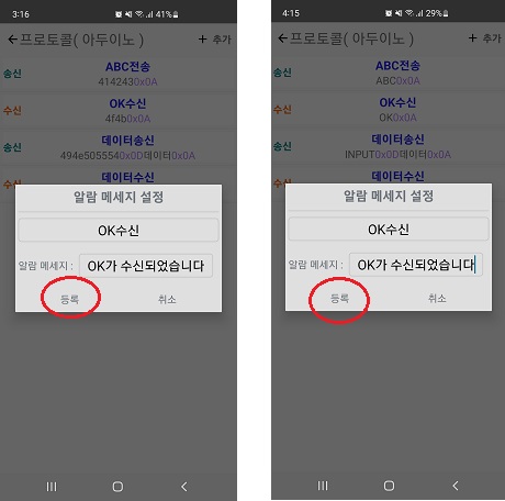4-2-7. "등록" 버튼을 선택하여 "알람 메세지"를 등록합니다