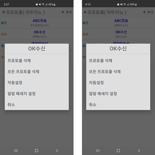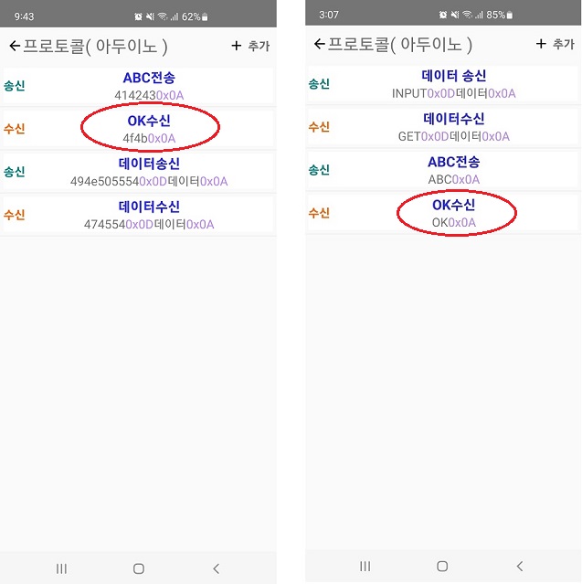 4-1-1. "OK수신" 프로토콜을 선택합니다 ( A 타입 )