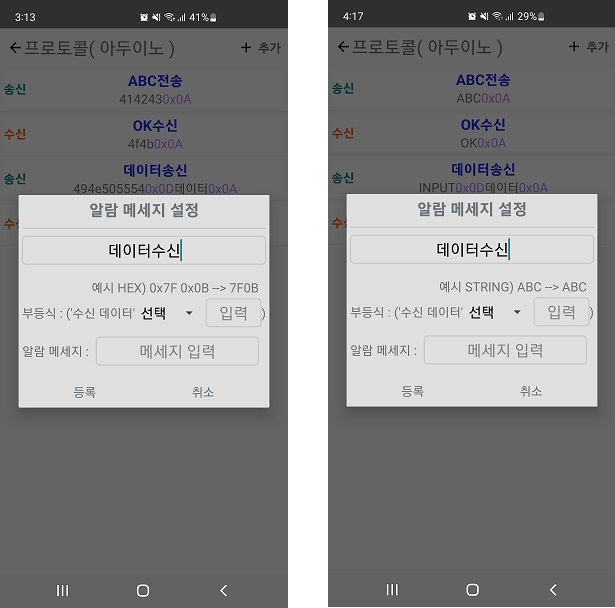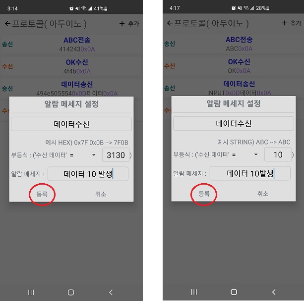 2-2.프로토콜 등록하기( "수신" 데이터 있음 )