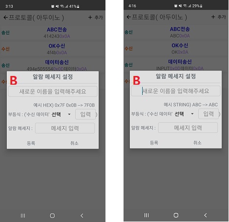 ○ B 타입 : "수신" 프로토콜에 "데이터" 있는 경우.