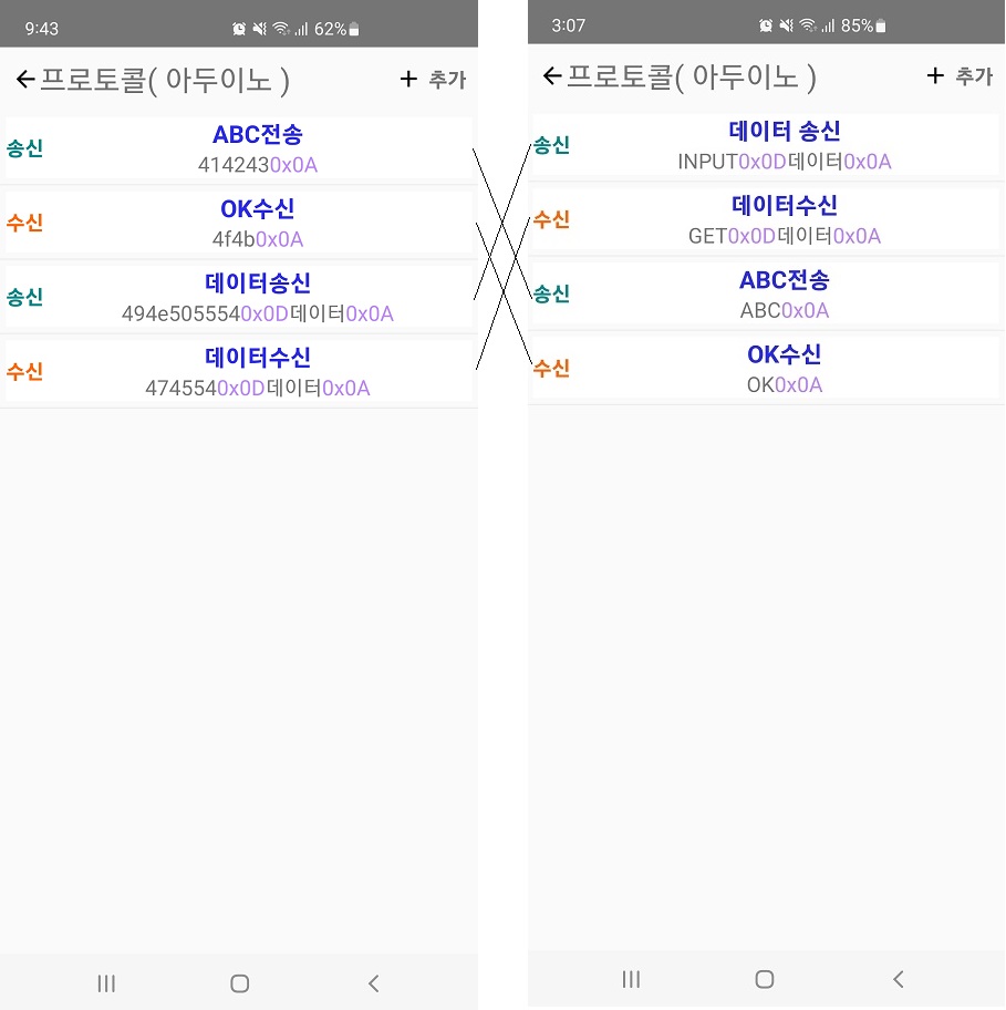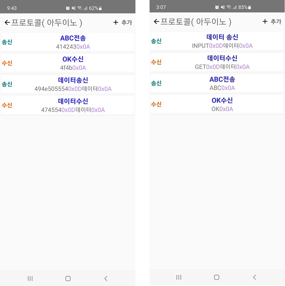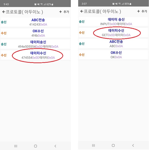 ex ) GET\r10\n "수신"되면, 설정된 이벤트를 실행한다.
