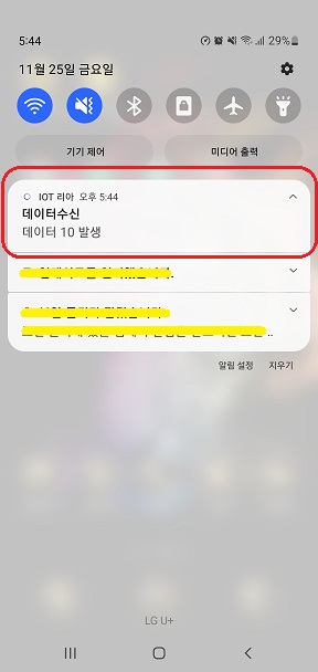 ☆ 실제 [ IOT 리아( IOT REA ) ] 앱에서 수신되는 메세지 형태는 아래 이미지와 같습니다