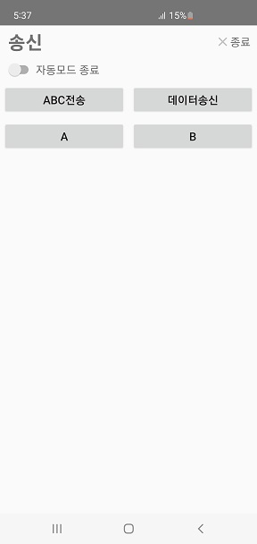 ◎ 화면을 왼쪽.오른쪽 스크롤하여 "송신" 페이지, "수신" 페이지, "로그"페이지로 이동할 수 있습니다.