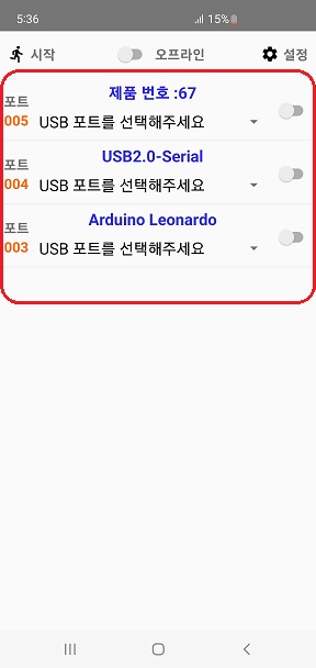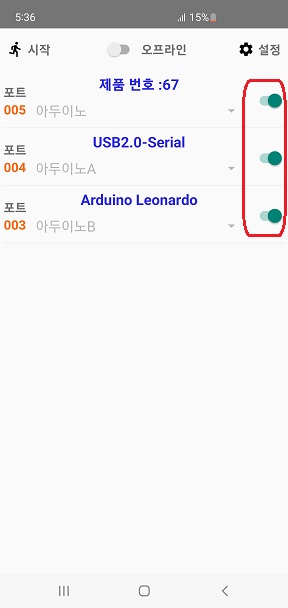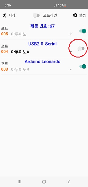 ★ 토글 버튼을 활성화 하기 위해서는 "USB 포트"에 "프로토콜"이 등록 되어있어야 됩니다.