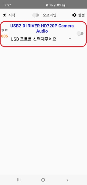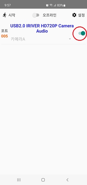 7. 토글 버튼을 "ON"하여 USB 카메라를 활성화 합니다