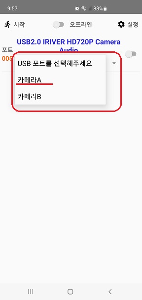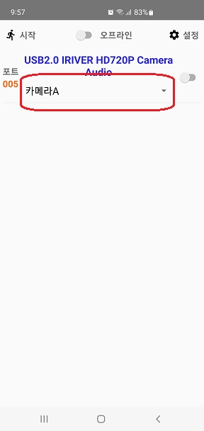 6. 스피너를 선택하여 등록된 "카메라A"를 선택합니다.
