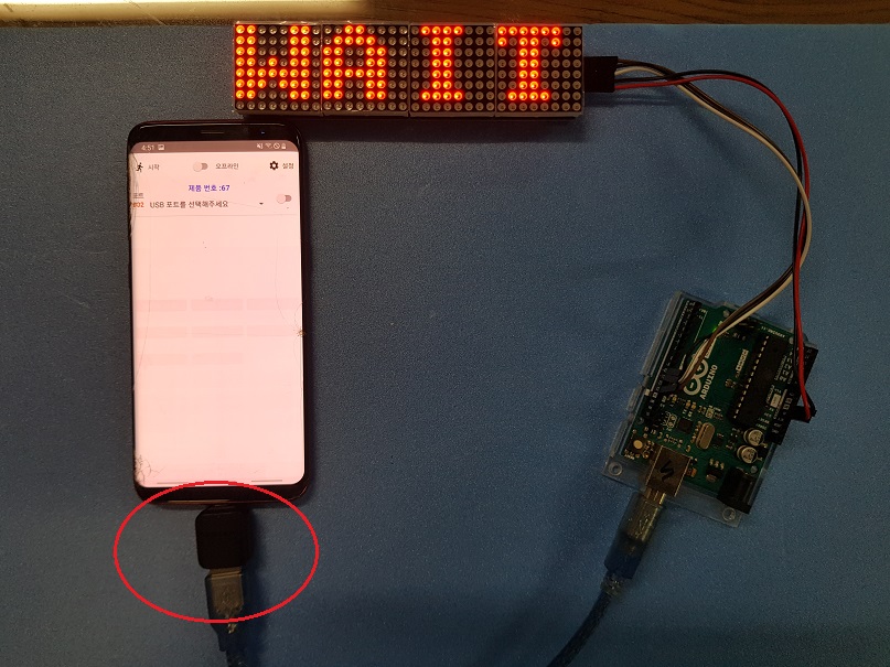 4. IOT 코아 앱이 설치된 스마트폰과 OTG를 연결합니다