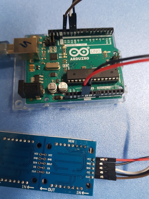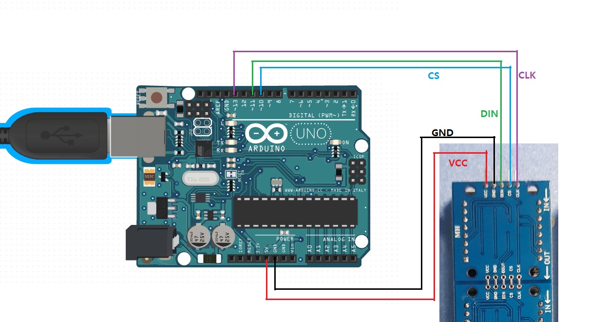 ☆ 본 예제는 "아두이노 32x8 매트릭스 원격 제어하기"에서 사용된 아두이노 코드 및 연결 회로 입니다 #define DIN 11 #define CS 10 #define CLK 13 #define TEXT_BUFF_LEN 40 #define MODULE 4 #define SPEED 50 const uint8_t font