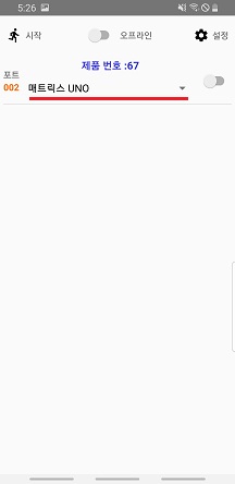 5-1. 시작화면의 "USB 포트" 스피너를 선택하여 등록된 "매트릭스 UNO" 보드를 선택합니다