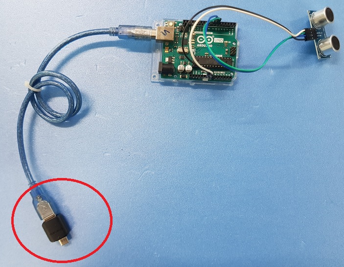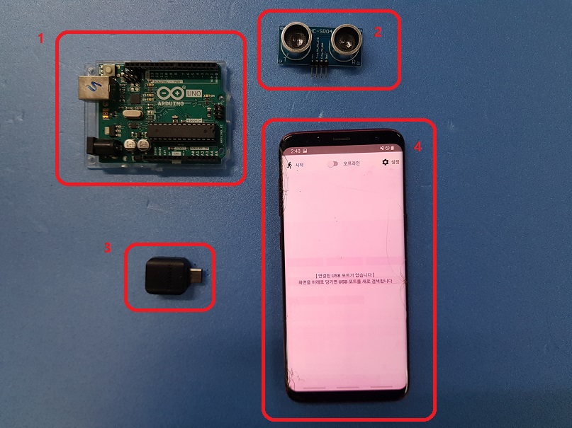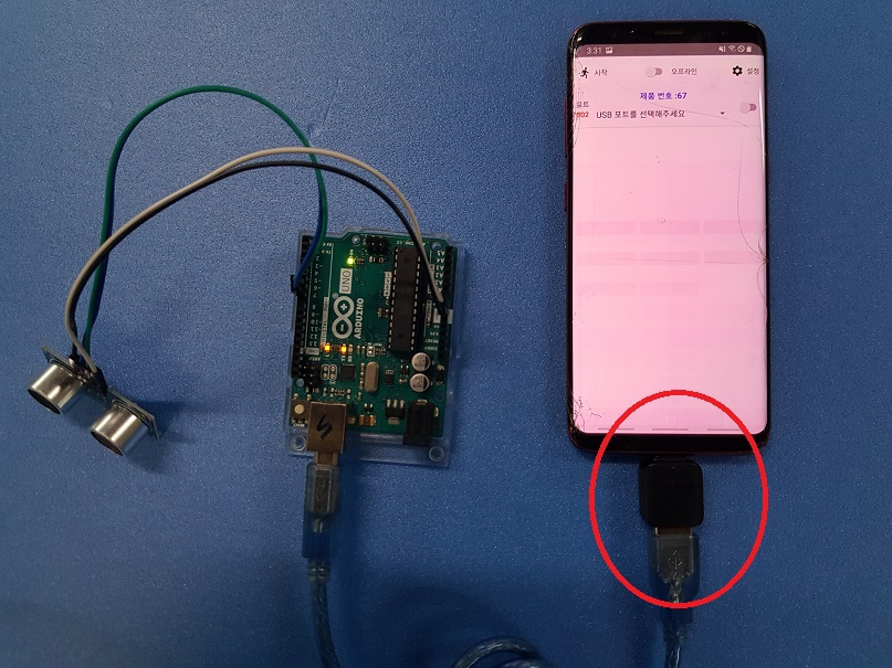 4. OTG 젠더와 IOT 코아 앱이 설치된 스마트 폰을 연결합니다