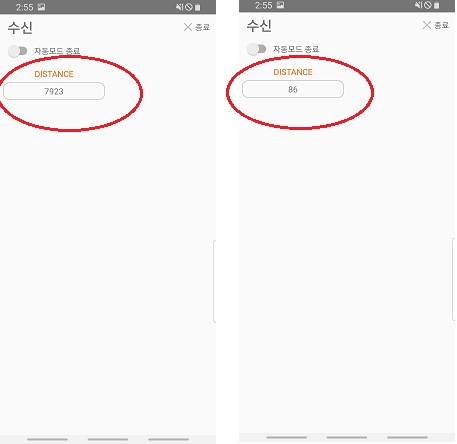 5-3. "수신" 페이지에 "DISTACE" 항목에 데이터가 출력되는지 확인합니다