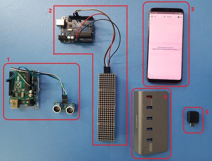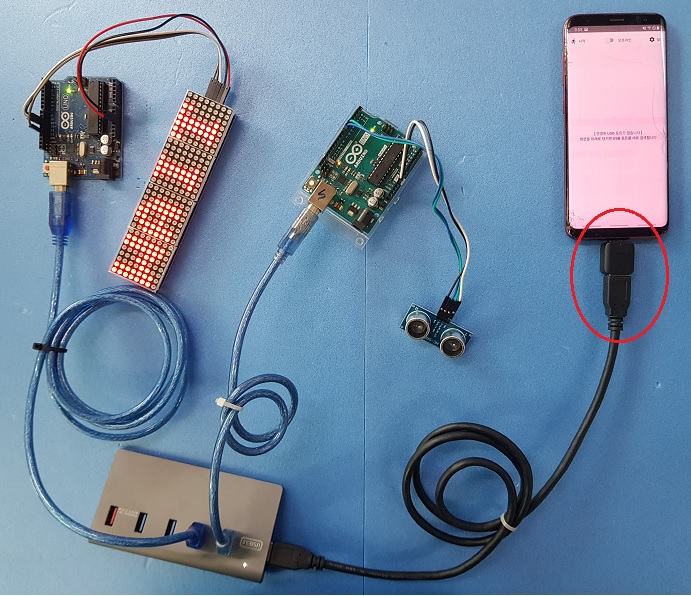 ( 스마트폰 전원으로 2개의 아두이노 전원 공급에는 한계가 있습니다 )