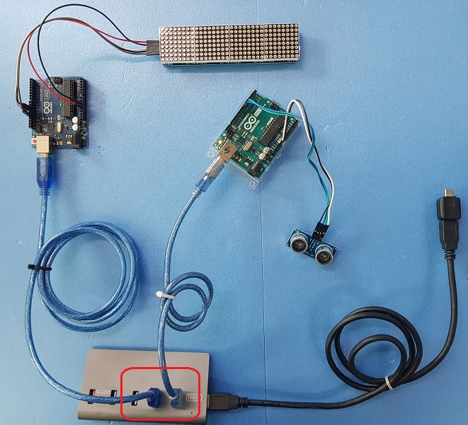 3. USB 보드에 "UNO-A", "UNO-B" 보드를 연결합니다
