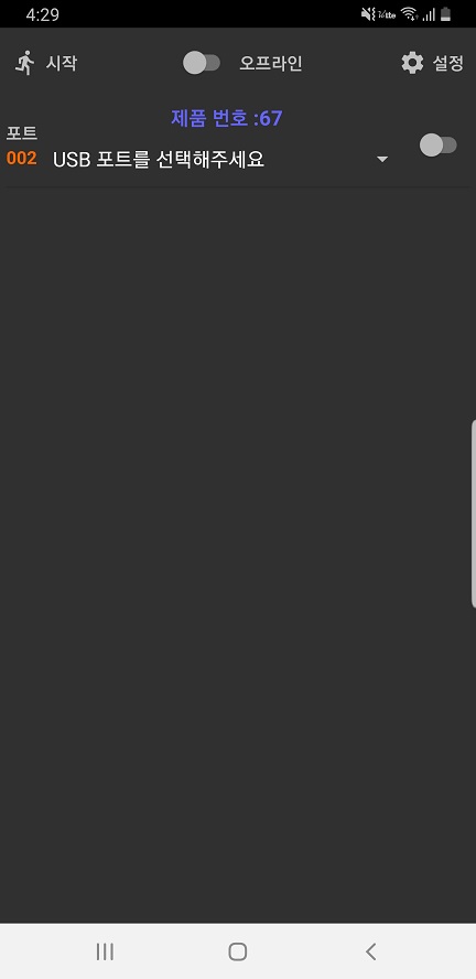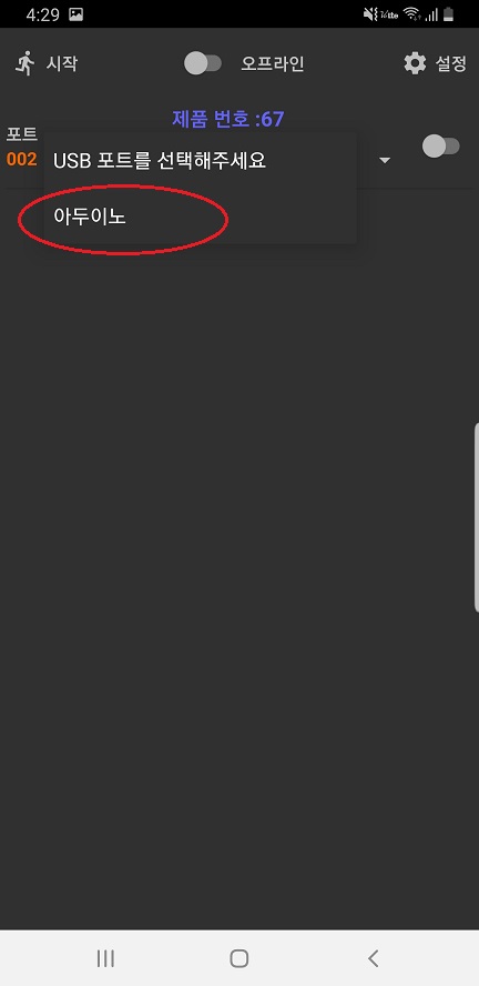 2. 리스트의 스피너를 선택하여 등록해둔 USB 포트를 선택합니다