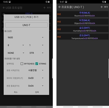 ◎ IOT 코아 앱의 아두이노 보드 설정상태는 아래와 같습니다