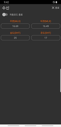 //☆ 비접촉 온도 센서 : MLX90614 //☆ 온습도 센서 : DHT11 #include #include #define DHT_PIN 8 #define LED_PIN 12 Adafruit_MLX90614 mlx = Adafruit_MLX90614(); DHT dht(DHT_PIN, DHT11); unsigned long send_delay = 2000; unsigned long last_send =