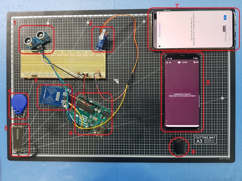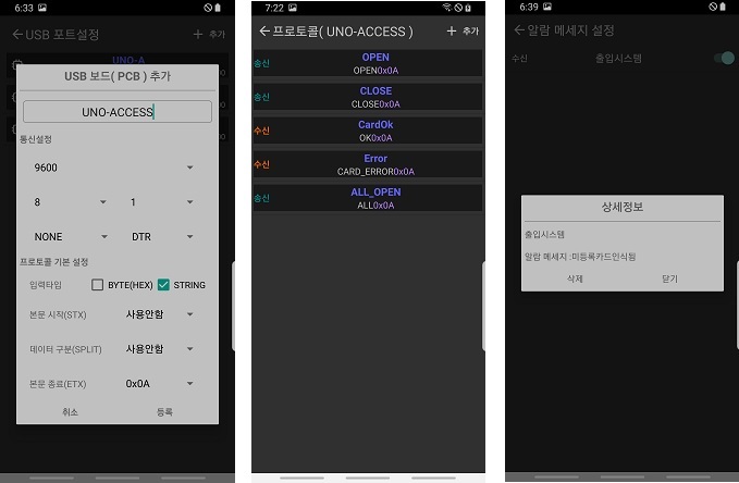 ○ 미등록 카드 인식시 [IOT리아]앱이 설치된 스마트폰에 알람메세지 발송.