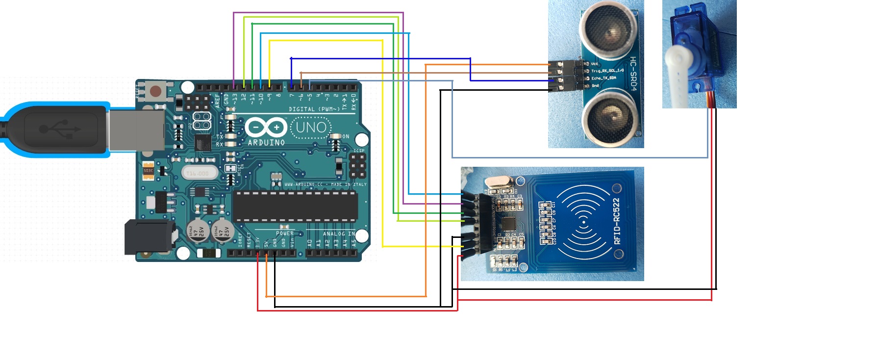 #include #include #include #define RST_PIN 9 #define SS_PIN 10 #define SERVO_PIN 5 #define TRIG_PIN 6 #define ECHO_PIN 7 MFRC522 rc522(SS_PIN, RST_PIN); Servo servo; int close_delay = 2000, serial_delay = 1000; unsigned long duration = 0, distance = 0, sto