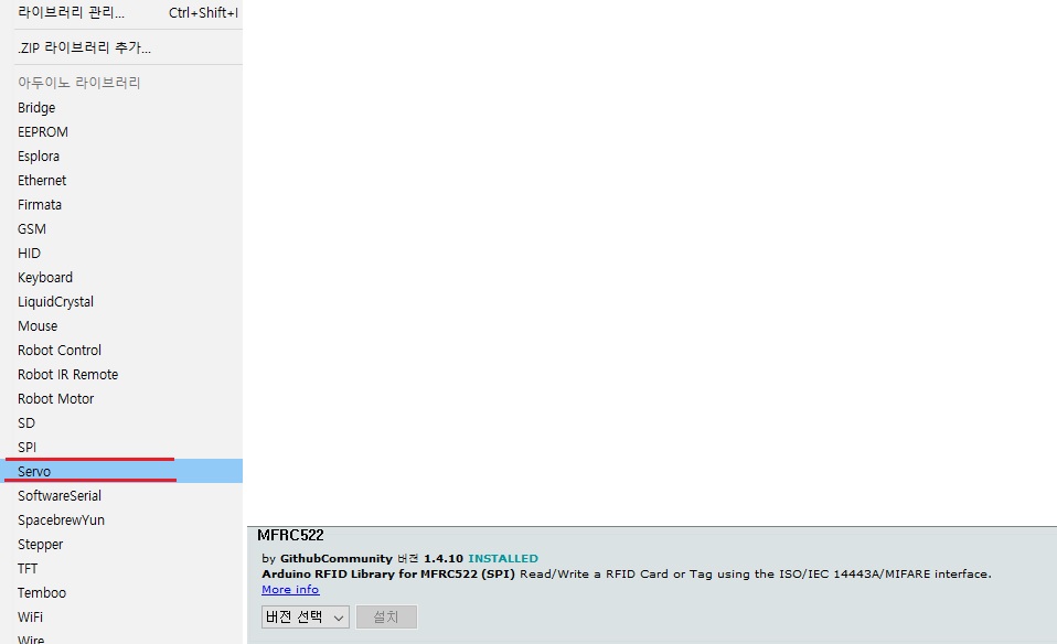 ◎ Servo, SPI, MFRC522 라이브러리를 포함합니다
