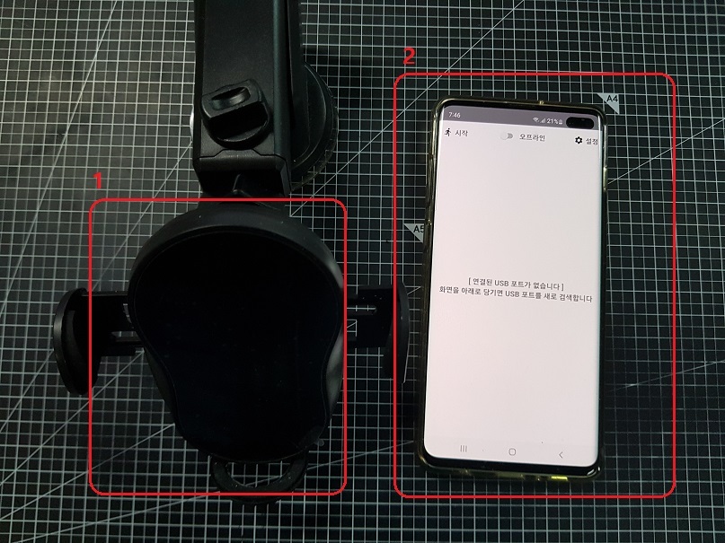 3. "무선충전기"에 [ IOT 코아 ] 앱이 설치된 스마트폰을 장착합니다