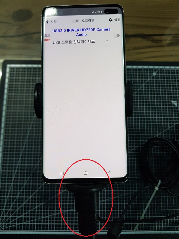 4. [ IOT 코아 ] 앱이 설치된 스마트폰에 USB 카메라를 연결 합니다