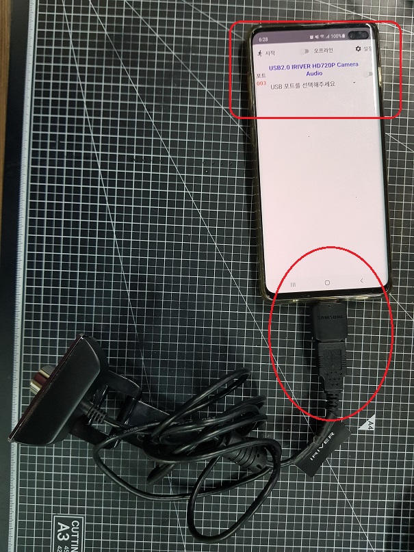 ◎ USB 카메라를 OTG에 연결 후 OTG를 스마트폰에 연결해주세요.