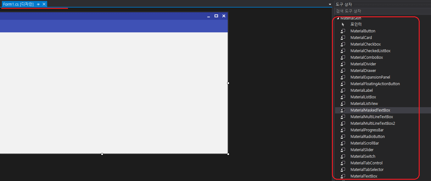 ※ 몇년전 UI 라이브러리를 사용해봤는데 telerik 인가? 엄청 무거워서 회사에서 사용하던 것을 제가 제거해버린 UI 툴이었고, 그 뒤로 UI 라이브러리는 무겁다는 인식이 강하게 박혀있던 상황이라, UI 라이브러리는 사용해볼 생각을 안하고 있었고, 기본 툴로만 개발하다 VisualStudio 2022 MAUI를 사용해보고 VisualStudio 2022 버전이 안정화 될때까지 기다리고 있었는데 ㅎㅎ, MaterialSkin 요놈! 구글에서 만든거같은데 상당히 가벼운듯하네요.