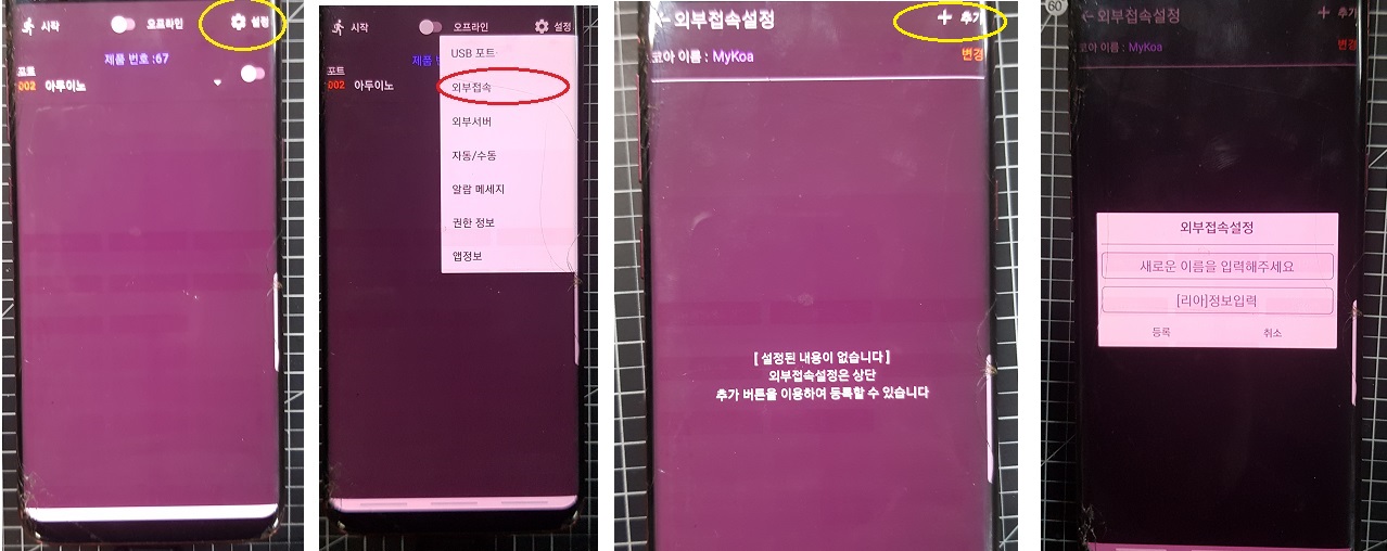 ☆☆☆ 여기서 중요합니다. 외부접속설정을 위해 IOT 리아 앱이 설치된 스마트폰이 필요합니다.