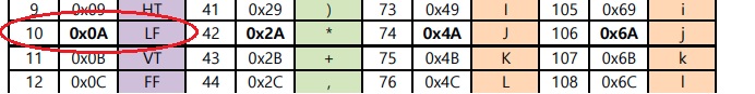 줄바꿈을 문자로하면? '\n'입니다. 아스키코드 표를 보면 다음과 같습니다
