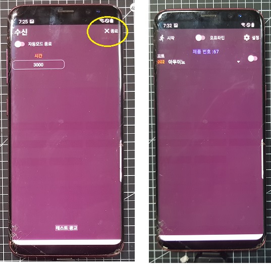 ★★ "동작중" 이란 말은, IOT코아 앱 메인화면 왼쪽 상단 "시작"버튼을 눌러서 동작중일 경우를 말합니다 ★★