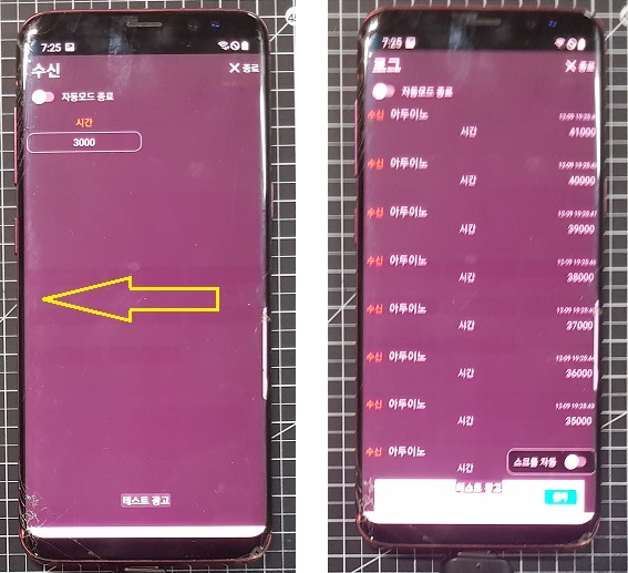 또한 다시 반대쪽으로 드래그하면 왼쪽 이미지 처럼 "수신"화면을 볼 수 있습니다.