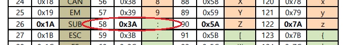 ( 0x3A 값을 문자로 바꾸면 쌍점(:)이 됩니다. 왜? 라는 물음이 떠오르시는 분은 아스키코드표를 참고하시면됩니다 )