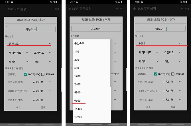 ◎ 통신속도를 9600으로 설정했습니다. 왜 9600으로 설정했을까요? 이유는 아래와 같습니다
