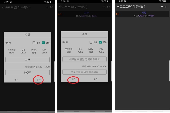 ◎ "추가"버튼을 눌러서 입력한 프로토콜을 등록해주면 끝!