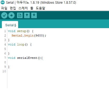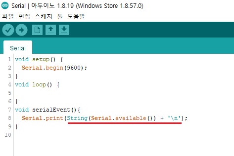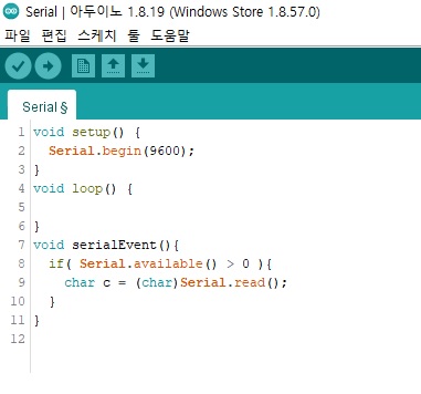 4. 기초학습에서 사용될 serialEvent() 기본 코드는 아래와 같습니다