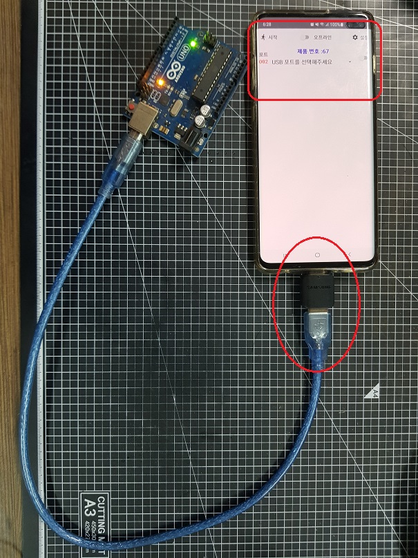 ◎ 보드를 OTG 에 연결 후 OTG를 스마트폰에 연결해주세요.