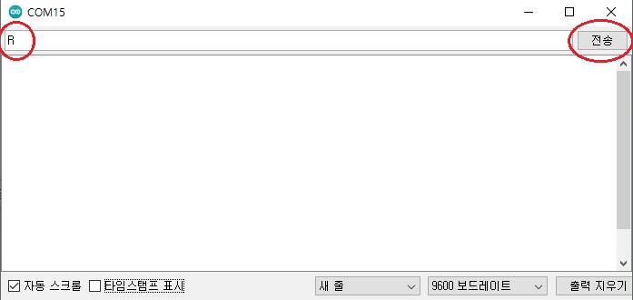 2. 다음과 같이 시리얼모니터를 통해 "R", "G", "B" 값을 입력합니다